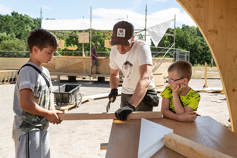 Das Schöne ist auch, dass sich das Design und die architektonische Struktur erst im Prozess ergeben. Die Kinder fangen irgendwo an, merken erst beim Bauen aha, das kann jetzt dies oder jenes werden, und verfolgen dann einen bestimmten Weg weiter, an den sie zuvor noch gar nicht gedacht hatten.