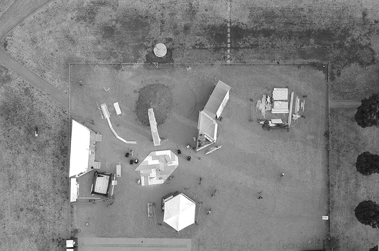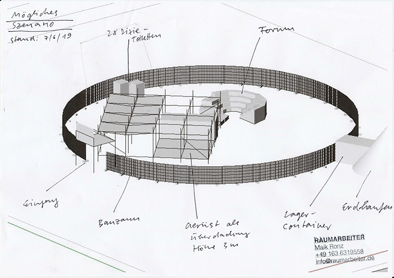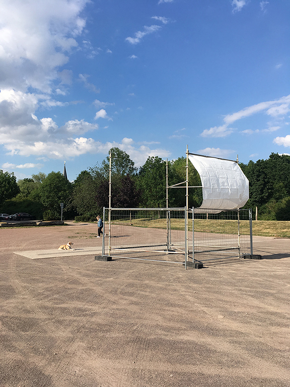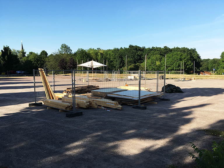 Wie bespielt man einen Platz, den keiner braucht, der noch nicht mal einen Namen hat? Der einfach da ist, weil hier nicht fertig gebaut wurde, der im Bewußtsein der Menschen, die hier leben, keine Rolle spielt, lediglich zeitweilig als Parkplatz dient – wobei diese hier eigentlich gar nicht knapp sind?