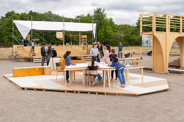 Ausgangspunkt waren Expeditionen, bei denen die Umgebung hinsichtlich bemerkenswerter sowie verbesserungswürdiger Zustände untersucht wurde. Hierbei kam es teilweise zum Erstkontakt mit Gebüsch und unwegsamen Terrain. Andererseits konnten Langeweile und Desinteresse an wohl bekannter Umgebung festgestellt werden. Es wurden seltene Pflanzen gesammelt, Herbarien angelegt und Biotope bestimmt. In Kooperation mit dem Sound Workshop Was hörst du? entstanden Markierungen besonderer Geräusche. Entwurfsgebiete wurden kurzerhand festgelegt. Ideen für Gebäude und Flächengestaltung wurden entwickelt und im Plan eingezeichnet: